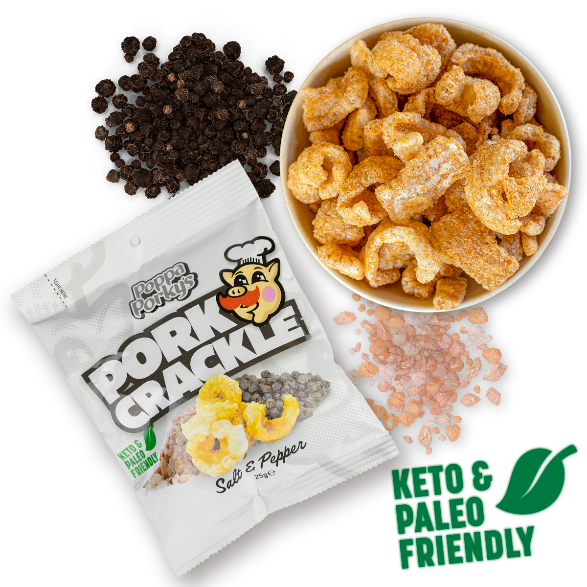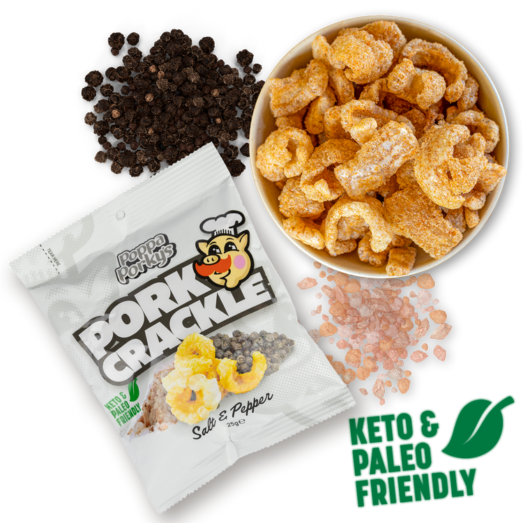 KETO & PALEO FRIENDLY GLUTEN FREE POPPA PORKY'S SALT AND PEPPER FLAVOUR PORK CRACKLE